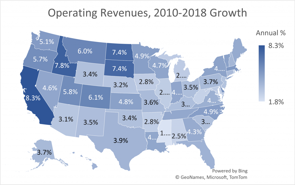 - The hospitals’ largest expense is wages and benefits. Among the nine largest hospitals in North Dakota, aggregate wages and benefits grew by about 7% annually between 2010 and 2019. This growth, in turn, was comprised of employment growth of about 3% annually, and wage and benefit growth per employee of about 4%.
